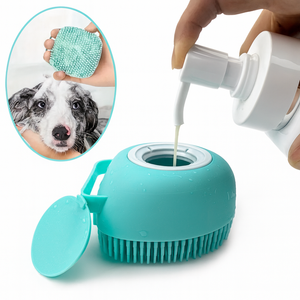 Silicone Pet Bath Brush with Shampoo Dispenser – Gentle Cleaning & Massage for Dogs & Cats